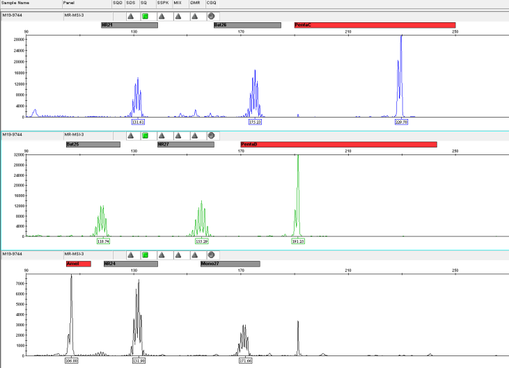 微衛(wèi)星是人類基因組的一段串聯(lián)重復(fù)序列,一般在1~6bp之間,又被稱作短串連重復(fù)(Short Tandem Repeats,STRs)或簡單重復(fù)序列(Simple Sequence Repeat,SSRs)。 微衛(wèi)星不穩(wěn)定(Microsatellite Instability,MSI)指的是微衛(wèi)星重復(fù)次數(shù)減少或者增加,微衛(wèi)星不穩(wěn)定的內(nèi)在機制是錯配修復(fù)(MMR)系統(tǒng)失調(diào),從而限制了糾正微衛(wèi)星自發(fā)的長度改變的體細胞突變的能力,體細胞突變積累,最終形成MSI。