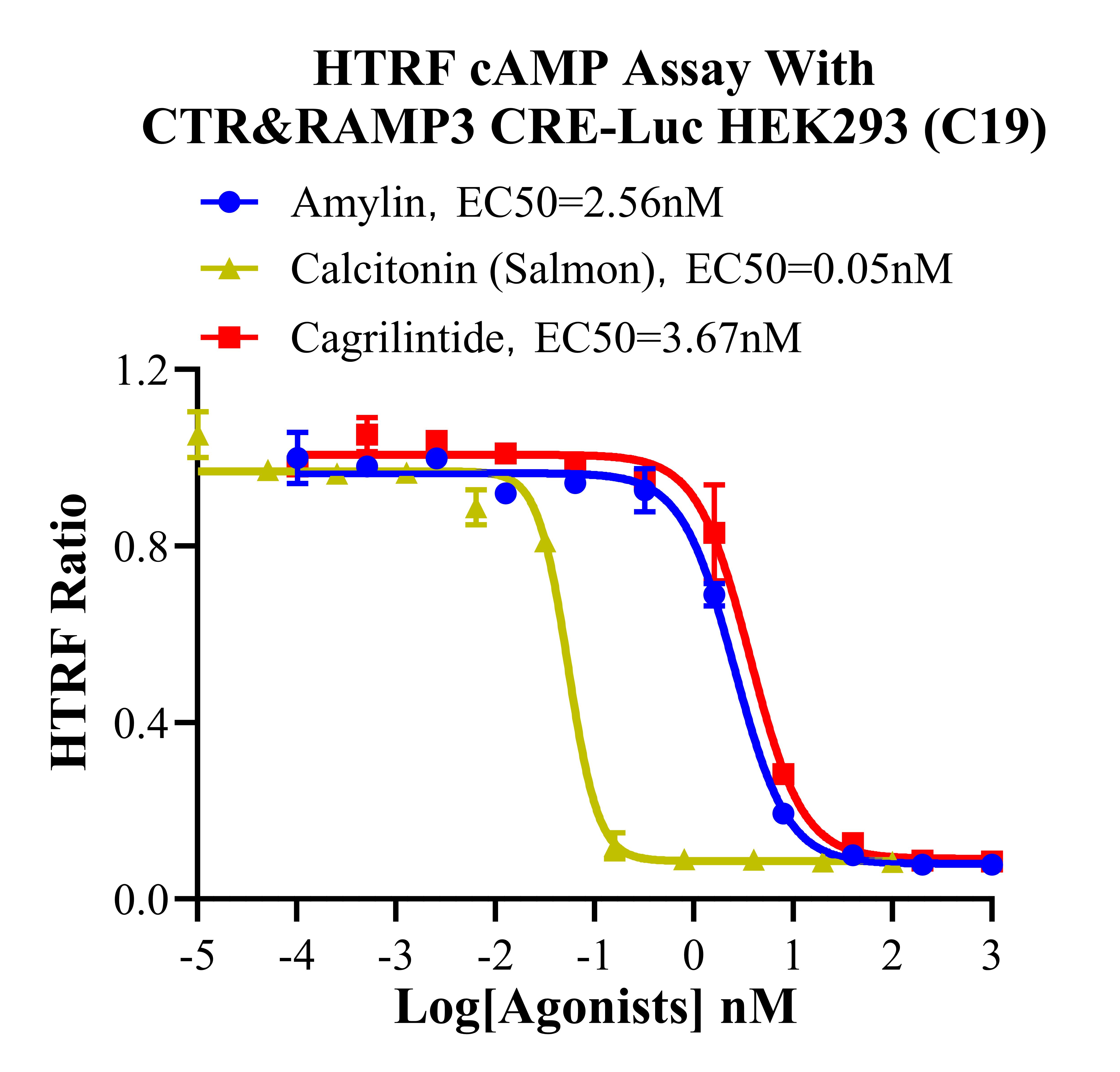 Figure 5. HTRF cAMP Assay with CTR&RAMP3 CRE-Luc HEK293 (C19). |