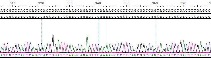 Figure 3. Sanger of BCR-ABL1 [E255V/T315I]/BaF3. |