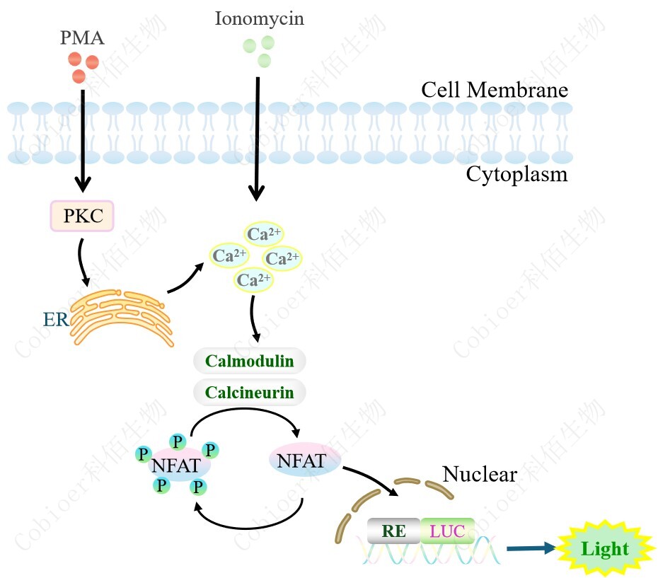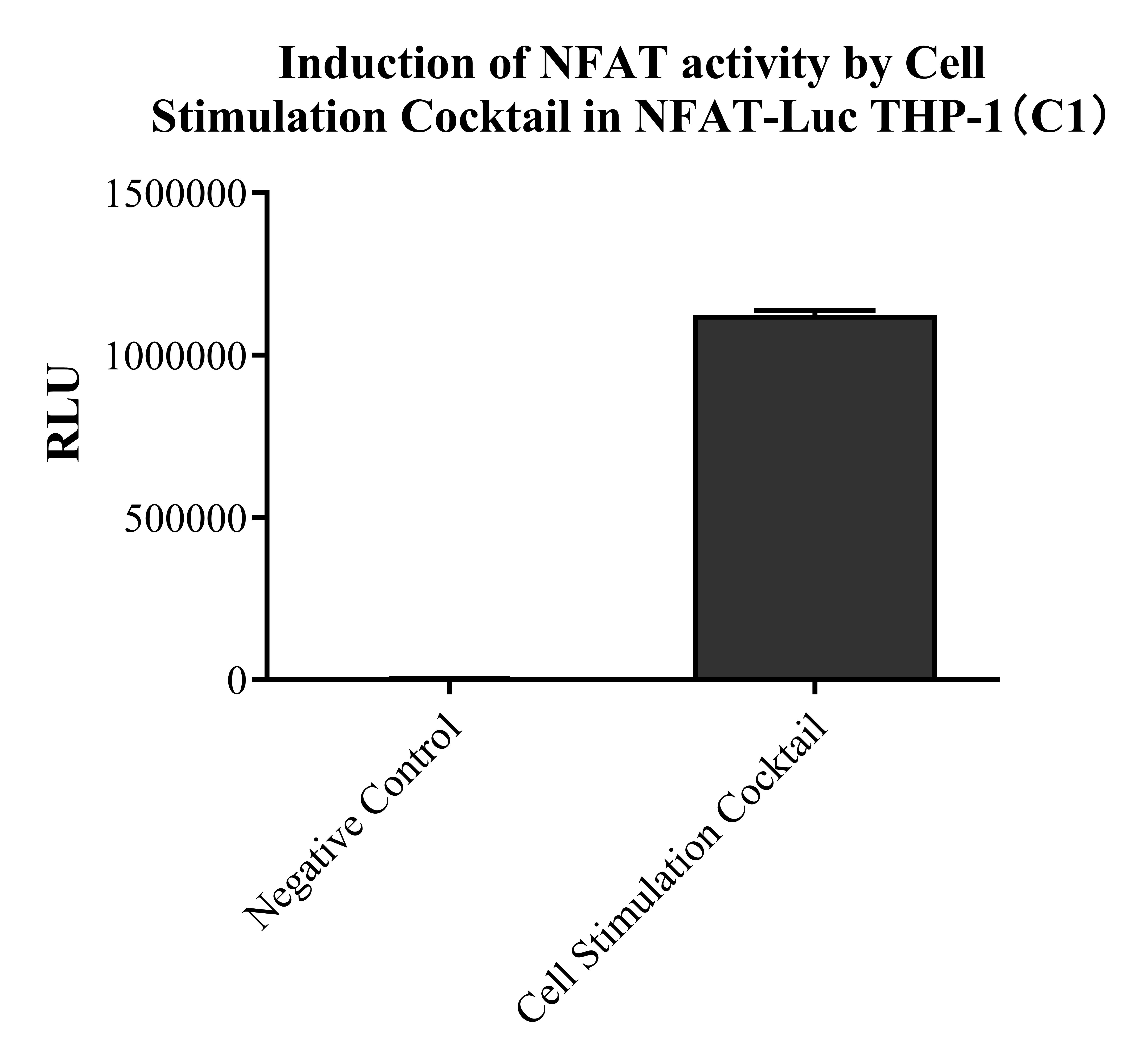 NFAT-Luc THP-1 報告基因藥靶模型很好的模擬了體內(nèi) NFAT 的信號轉(zhuǎn)導(dǎo)過程,原理見下圖所示。![]() Figure 1. NFAT Stimulation Assay 驗證結(jié)果 |