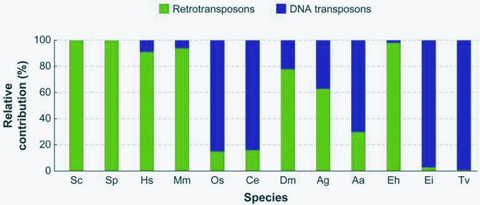 轉(zhuǎn)座因子(Transposable element,簡稱TE),又稱“跳躍基因”,是指從基因組的一個(gè)位置移動(dòng)到另一個(gè)位置的DNA序列。這類因子最早由遺傳學(xué)家芭芭拉·麥克林托克于50多年前發(fā)現(xiàn)。起初,生物學(xué)家對(duì)麥克林托克的發(fā)現(xiàn)持懷疑態(tài)度。然而,在接下來的幾十年里,人們逐漸發(fā)現(xiàn),TE不僅會(huì)“跳躍”,而且?guī)缀醮嬖谟谒猩矬w(包括原核生物和真核生物)中,而且通常數(shù)量巨大。例如,TE約占人類基因組的50%,占玉米基因組的90%。
